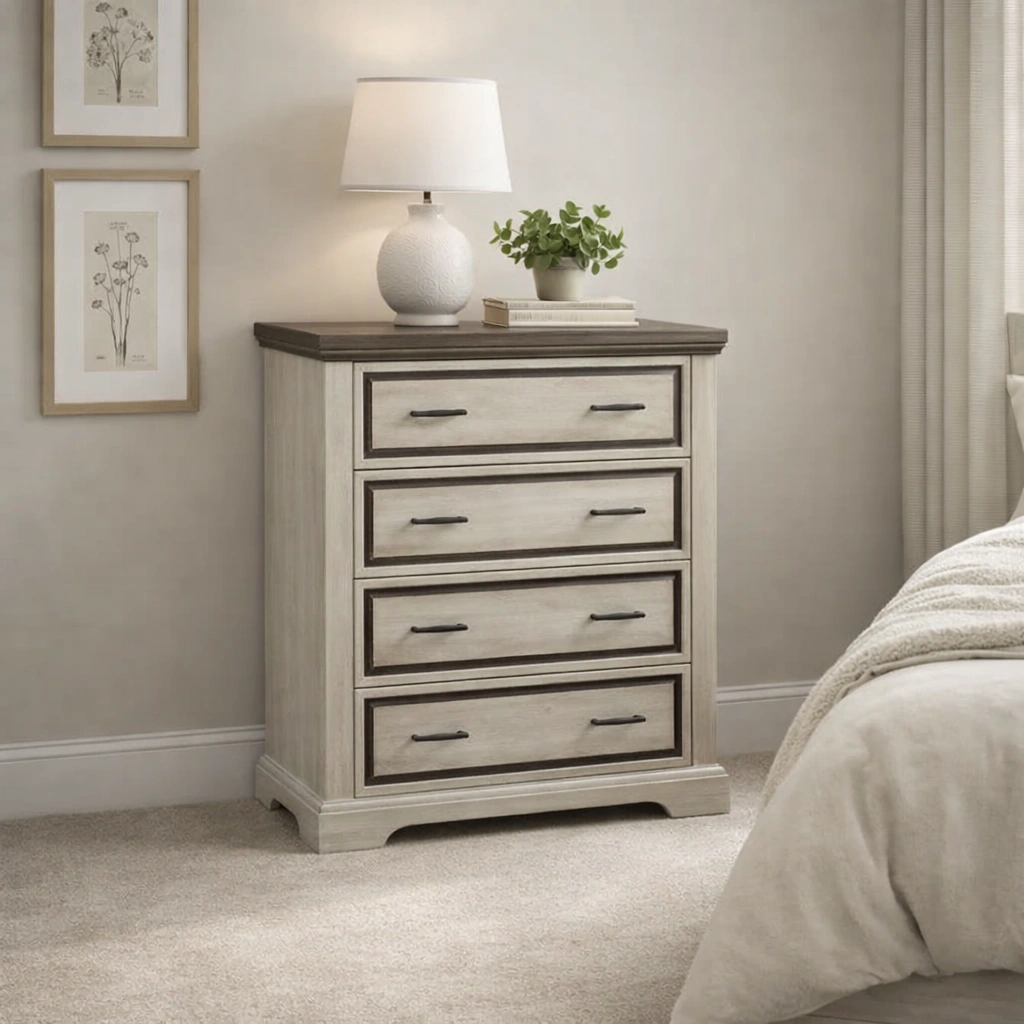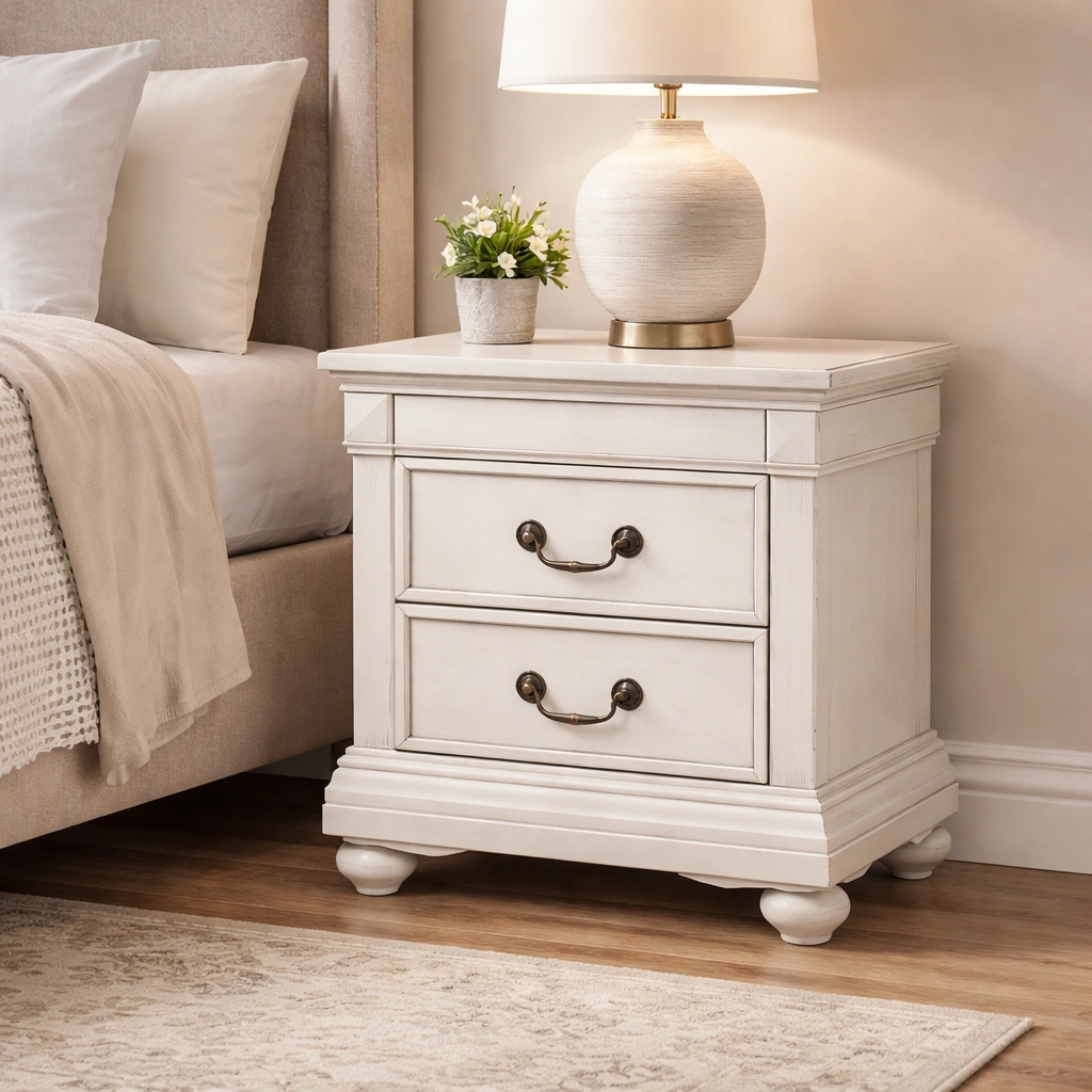 Les meubles de rangement, comme les commodes à tiroirs, tables de chevet et vitrines, participent à une organisation lisible de l’intérieur.