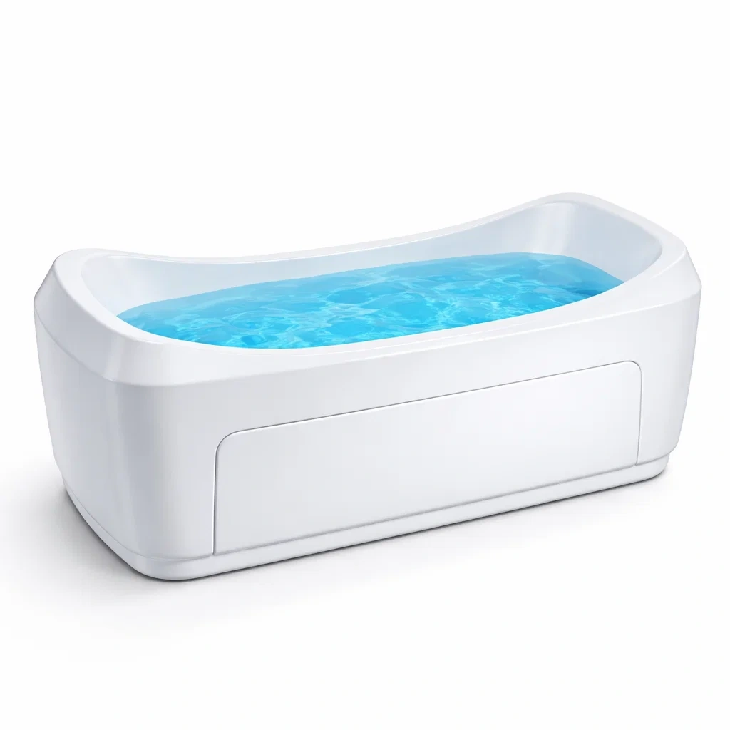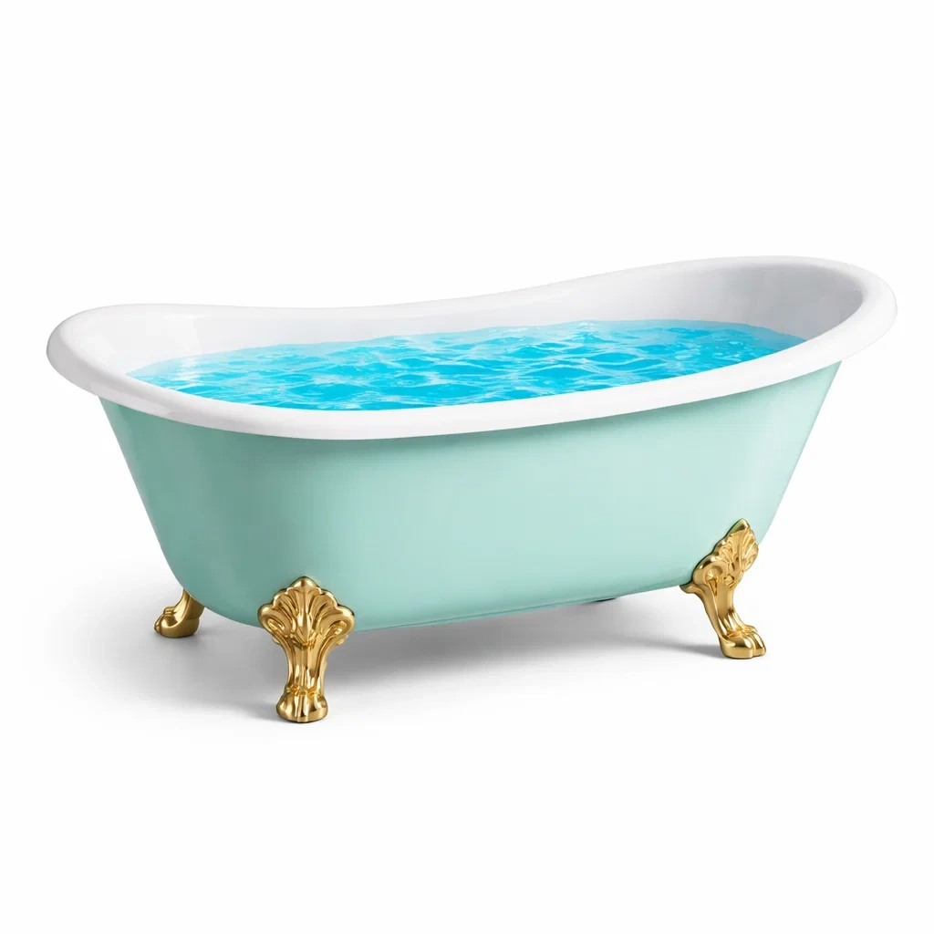 Baignoire autoportante en fonte émaillée bleu vert avec pieds dorés