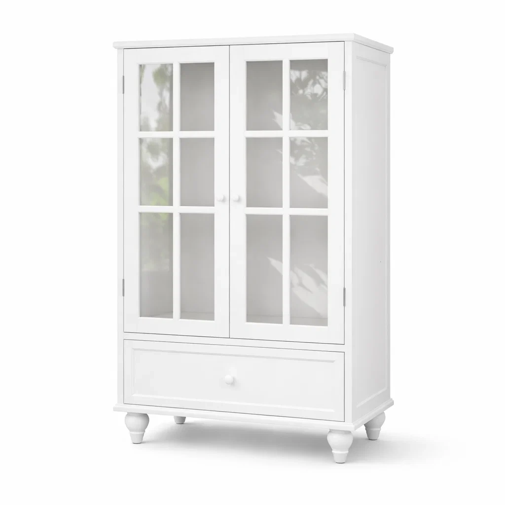 Vitrine en bois MDF blanc avec portes en verre trempé